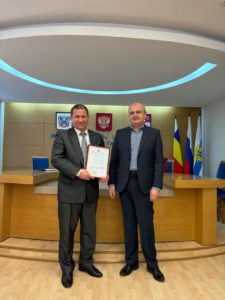 Работа комиссии началась с торжественного награждения благодарственными письмами Администрации города Таганрога представителей различных предприятий и ведомств за многолетнее сотрудничество в области развития потребительской грамотности населения и вклад в обеспечение эффективной системы защиты прав потребителей города Таганрога. Благодарственное письмо было вручено в том числе и Сергею Дёмину, который выступил перед собравшимися с докладом «О практике работы ТМТПП по проведению независимых экспертиз газовых счетчиков по заявкам населения и судебным определениям».
